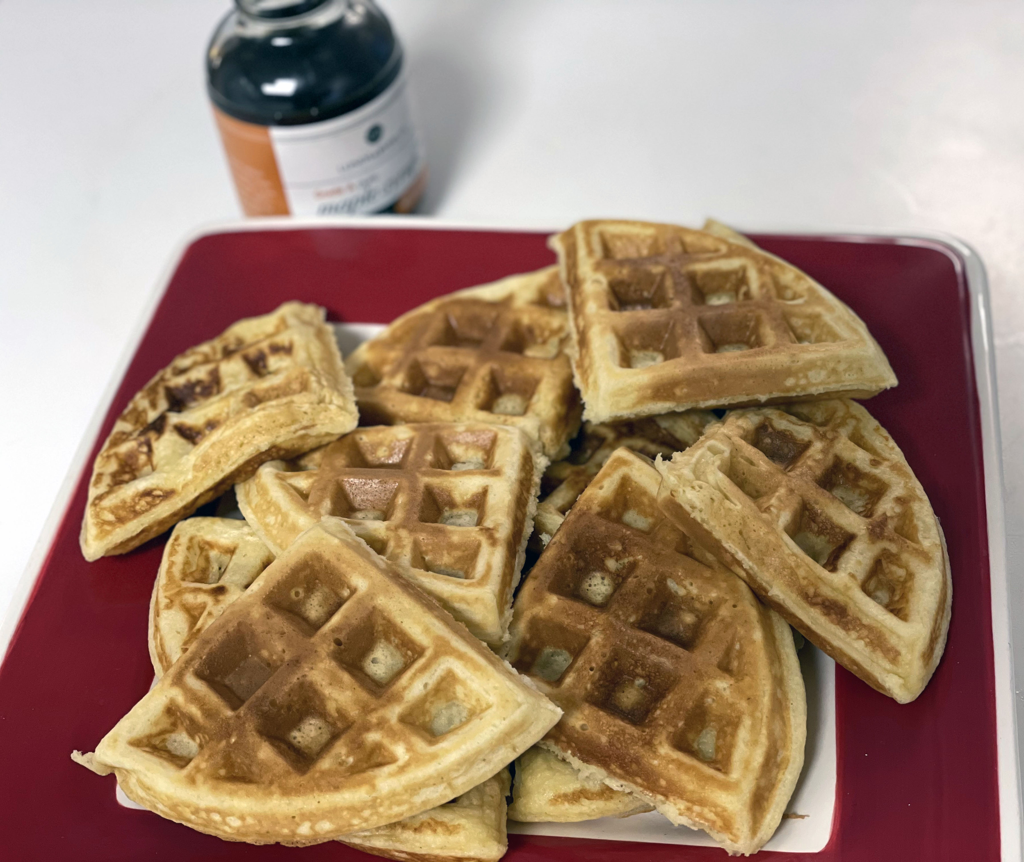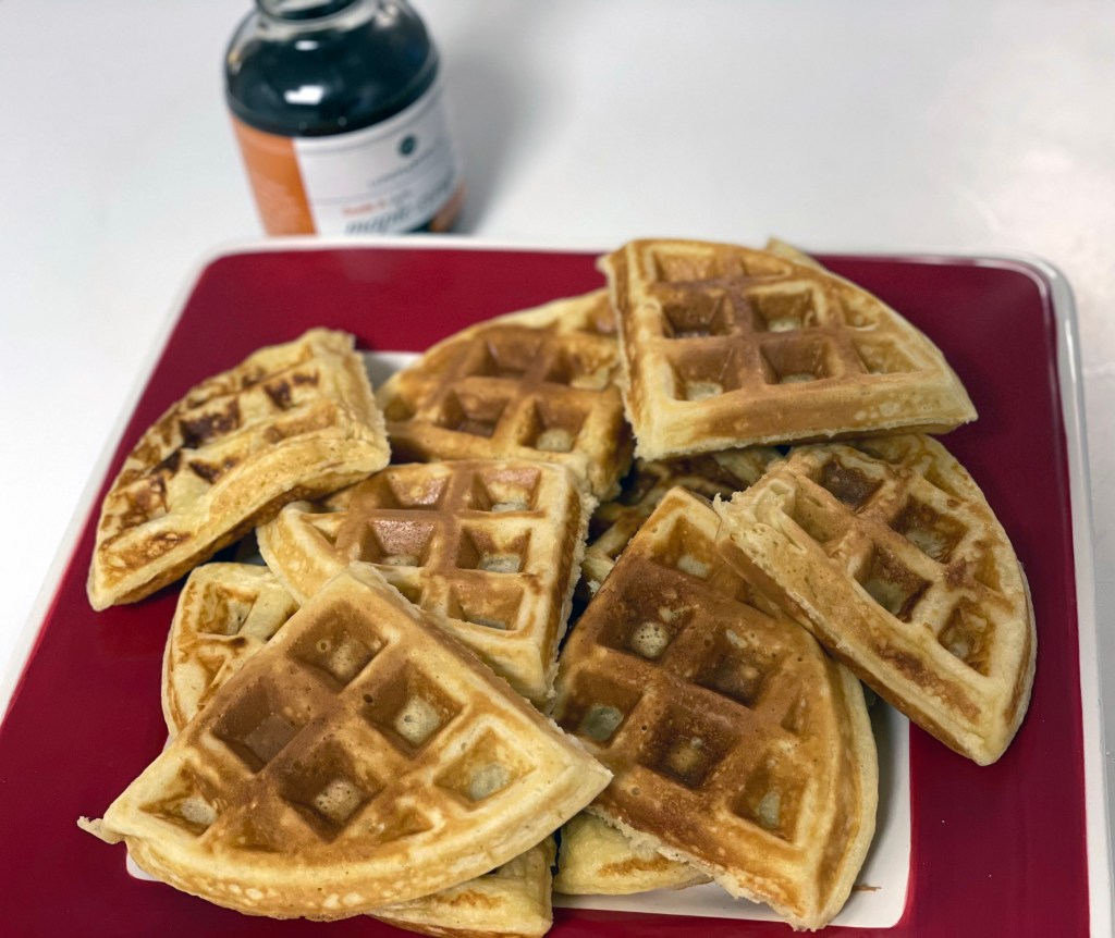 Note: I have a 8-inch round Belgian waffle-iron. This recipe makes four “full” waffles – or 16 “quarters” – which I freeze for when my grandchildren visit. They love waffles – but not waiting for me to mix up the batter and bake them! Just pop a frozen one in the toaster – definitely better than Eggos!