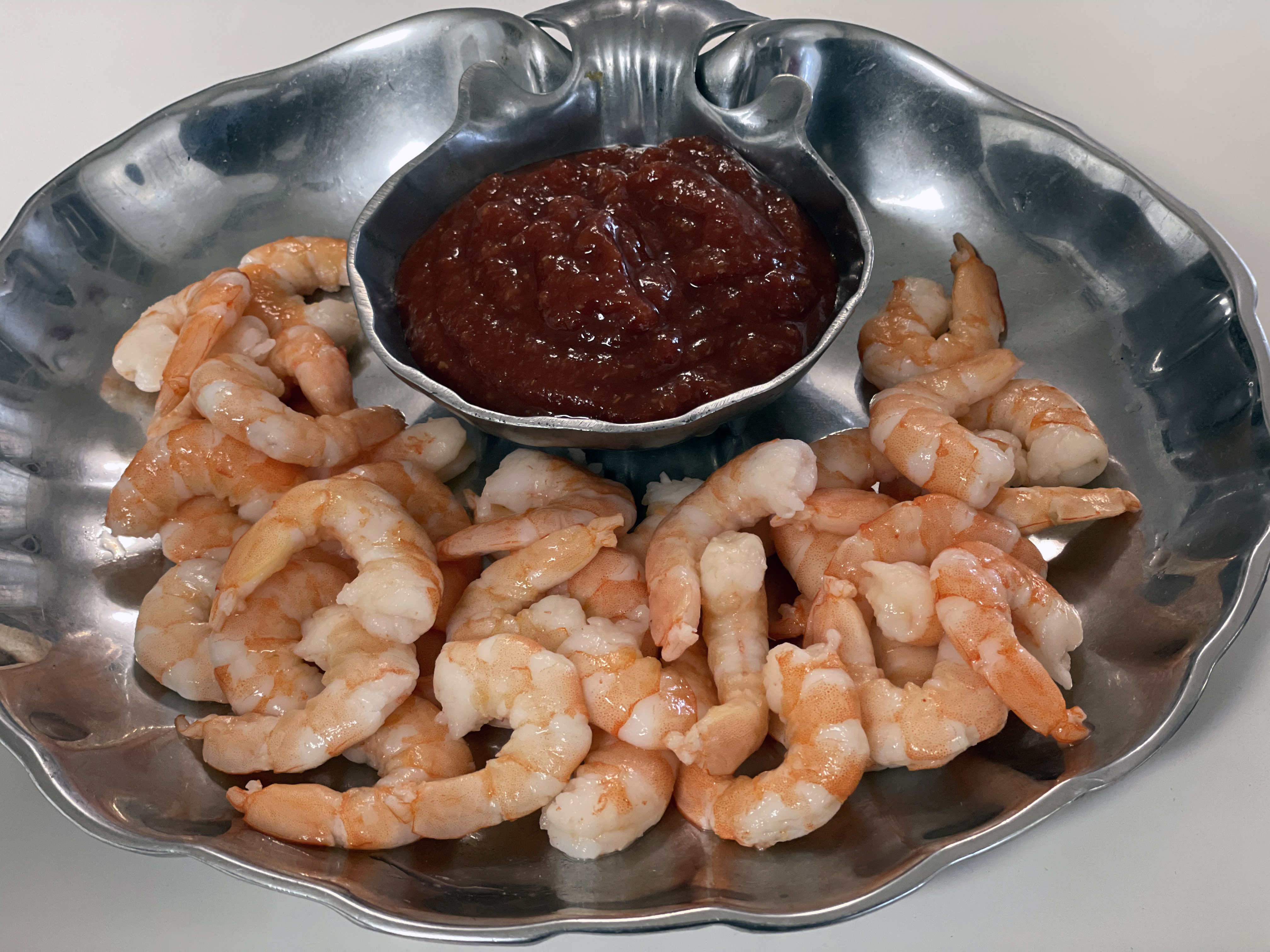 Chill shrimp. Meanwhile, combine chili sauce, lemon juice, prepared horseradish, Worcestershire sauce, onion and bottled hot pepper sauce. Add salt to taste. Chill thoroughly. Line chilled cocktail cups with lettuce. Add 4 or 5 chilled shrimp to each cocktail cup. Spoon cocktail sauce over shrimp. Serve with cocktail forks. (Or “group” serve – see photo! – and let guests dive in – with those cocktail forks of course)