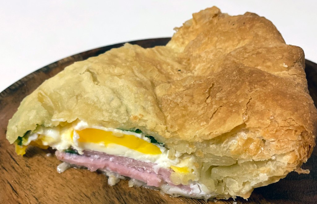 I love trying out-of-the-ordinary recipes. I found this recipe in Cooking the Australian Way (1990) by Mary Winger, another cookbook from the ethnic cookbook series by Lerner Publications I have in my collection. The author shares that Australians love going on picnics, and this dish is a popular option. Puff pastry plus bacon plus eggs – why wouldn’t it taste amazing? I served this as a main dish alongside a salad for dinner one night. And my husband gladly finished the leftovers – served cold for lunch. This would be ideal for a brunch! And I love the idea of making it the centerpiece of a picnic!