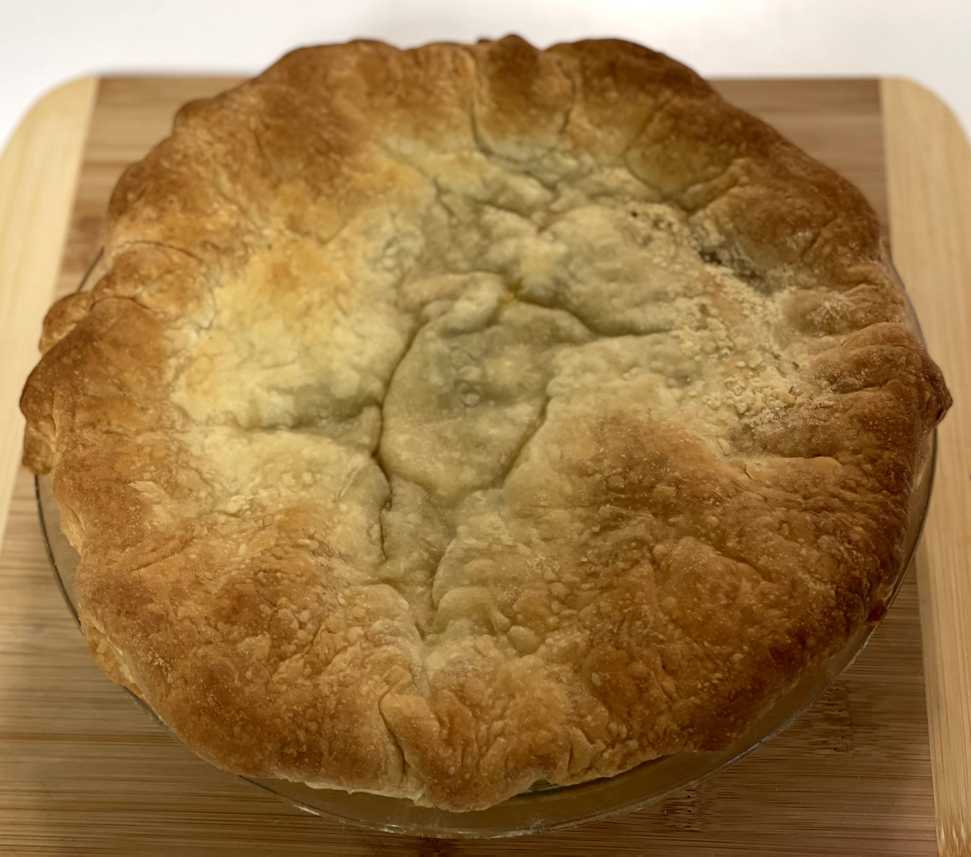 Carefully place the filled pie plate on a baking sheet and bake in the preheated oven about 30 minutes or until pastry is puffed and golden brown on top. Remove the pie from the oven carefully and allow to cool 5 to 10 minutes before serving. To take the pie on a picnic, wrap the pie plate in a kitchen towel, then in layers of newspaper to keep it warm.