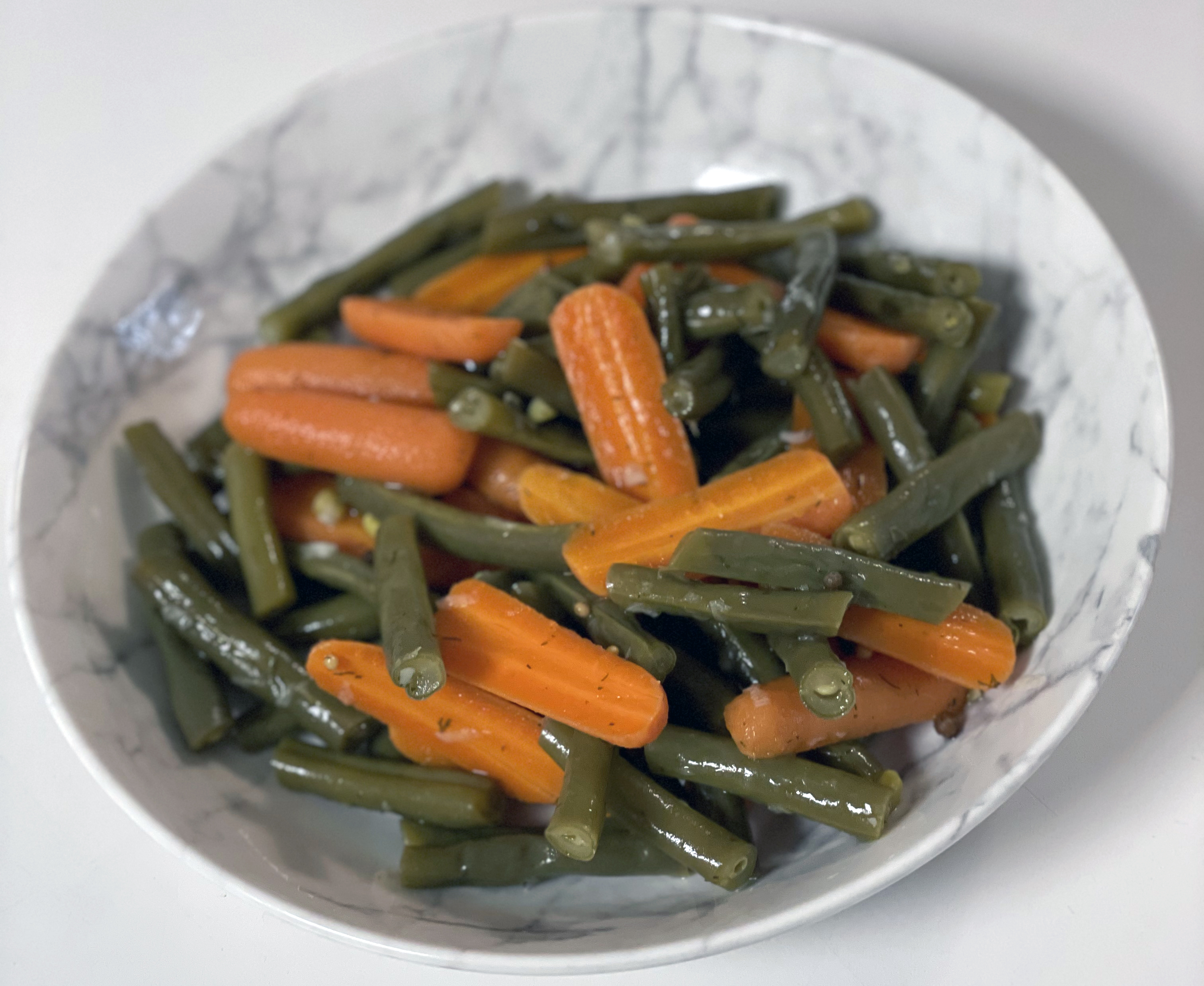 With summer fast approaching and the opportunity to once again have friends over for food and fun – I’m back on the look-out for new and different recipes to add to my culinary repertoire. I found this recipe for essentially pickled beans and carrots in Appetizers by Mable Hoffman (1980). “These will add color to your cocktail buffet table or antipasto tray,” the cookbook author writes. That was enough to convince me to try it! Delish! This simple mixture of flavors and tastes is outstanding. A distinctive sweet and sour vibe with crunch and color! I ended up eating a bowl of it for lunch today!