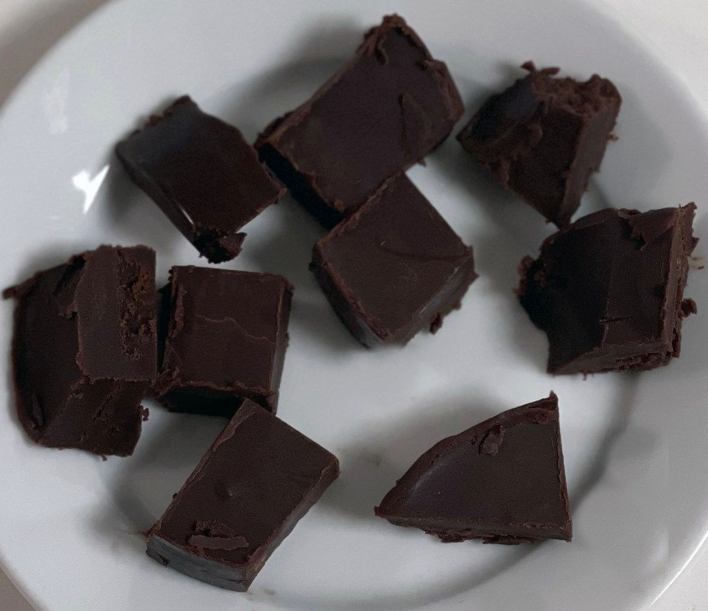 Cook’s note: I poured the remaining frosting into a small container and refrigerated it. I wasn’t sure what I would do with it but I hate to throw out anything – especially good chocolate. I popped it out of the container the next day and cut it into small squares – voilà chocolate fudge!
