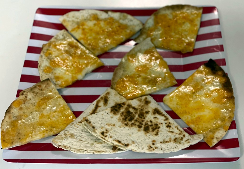 What’s not to love about tortillas stuffed with cheese and then grilled until they are warm and slightly melty? I was overwhelmed trying to pick just one recipe from the dozens of great chili recipes in The All-American Chili Cookbook (1995) by Jenny Kellner and Richard Rosenblatt. So instead I picked the quesadillas! Vary type of cheese and even the tortillas you use for totally different taste sensations. I prepared them open-faced and closed – as detailed in the recipe itself. These make a quick, easy to fix appetizer or a kid-friendly lunch.