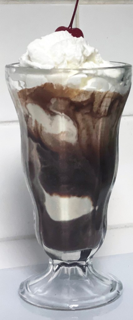 I was surprised to find I still had a Litton Microwave Cooking Step-by-Step Cookbook (1978) on my shelf. And even more surprised to find a recipe for the hot fudge sauce I’ve been craving. It’s even better reheated. This isn’t a super thick sauce but appropriately rich and thick enough to coat that ice cream. Don’t forget the whipped cream and cherry!